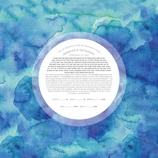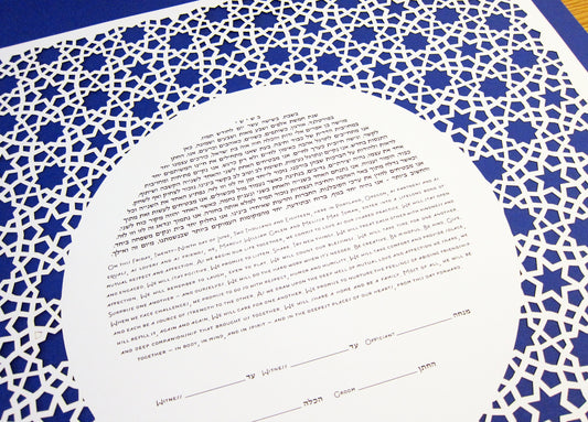 Laser Cut Mosaic Pattern Ketubah with watercolor print background
