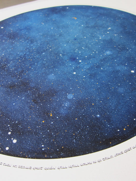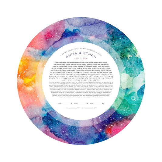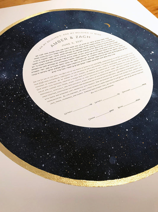 Galaxy Moon Watercolor Ketubah Print with Star Map Option