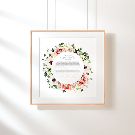 Spring Wreath Ketubah - Fine Art Print for interfaith, reform and orthodox weddings