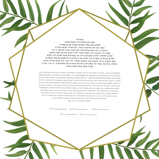 Tropical Leaves Ketubah Fine Art Print for interfaith, reform and orthodox weddings