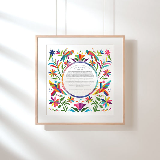 Geometric Bouquet Ketubah - Fine Art Print for interfaith, reform and orthodox weddings