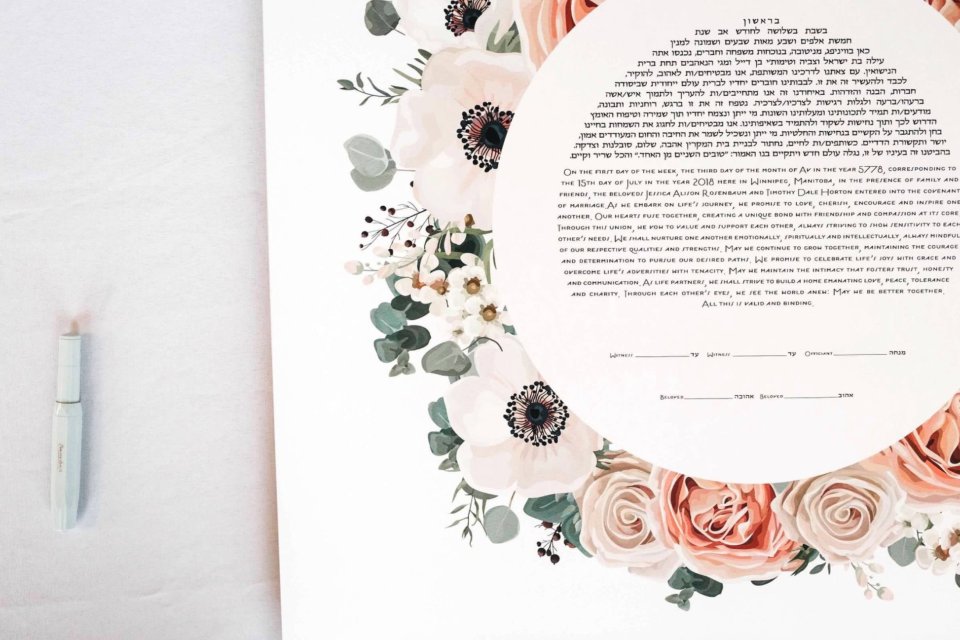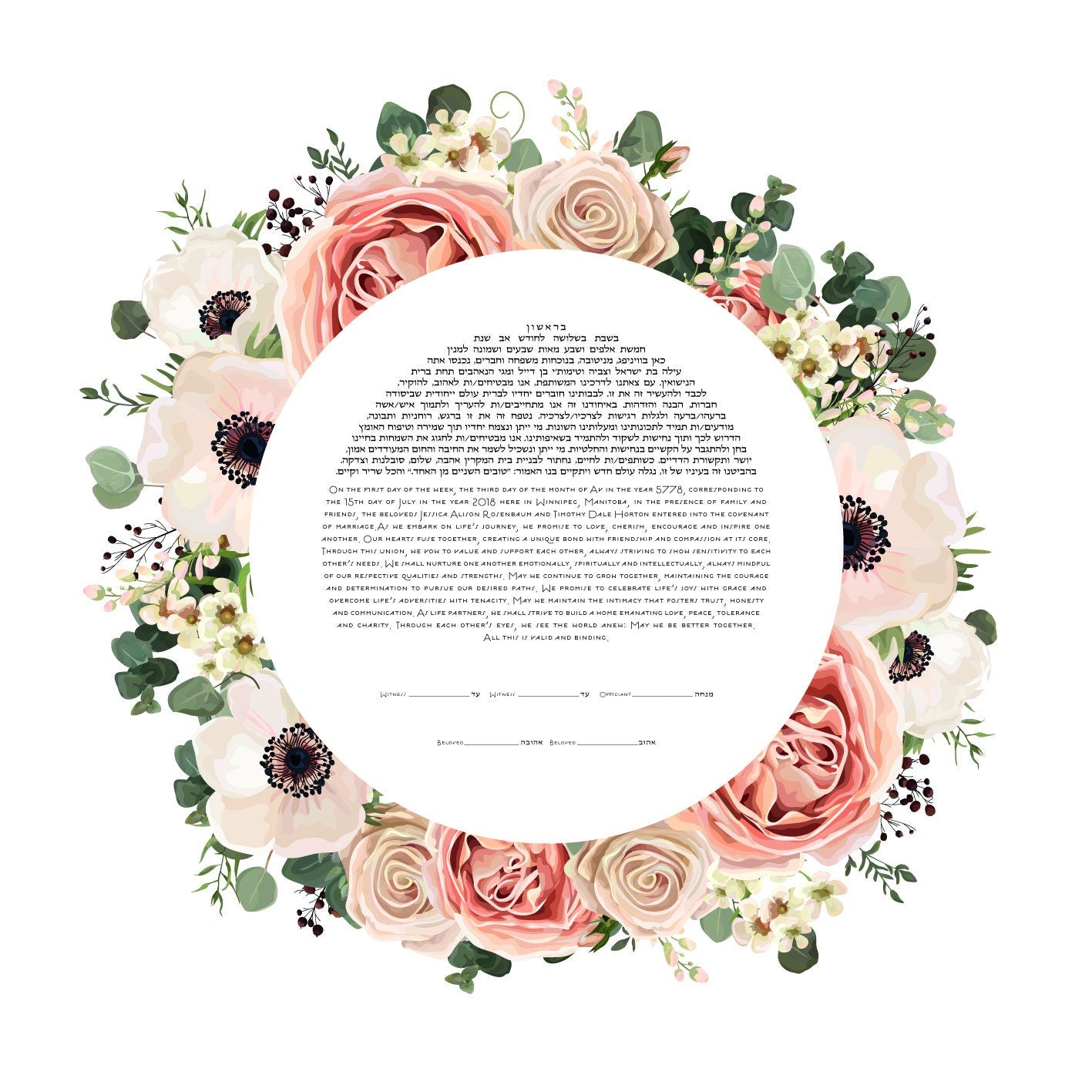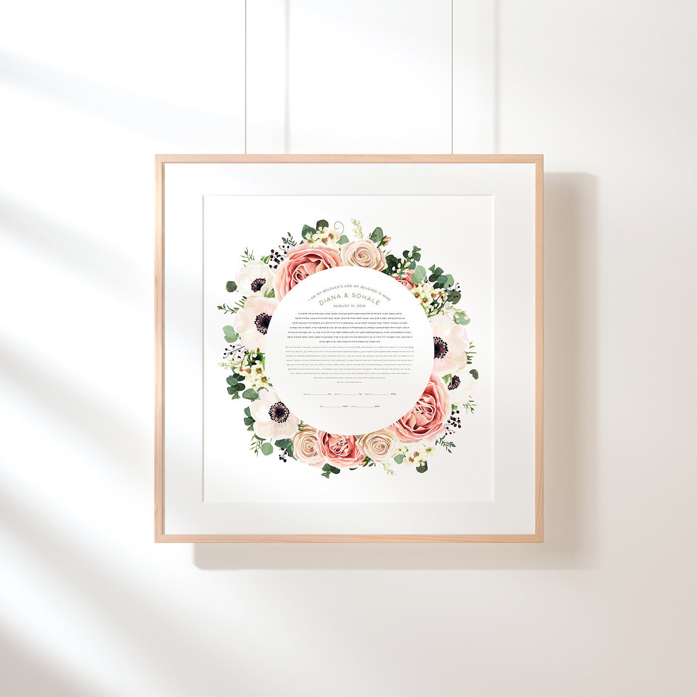 Circular Bouquet Ketubah - watercolour graphic print, including the text of your choice.