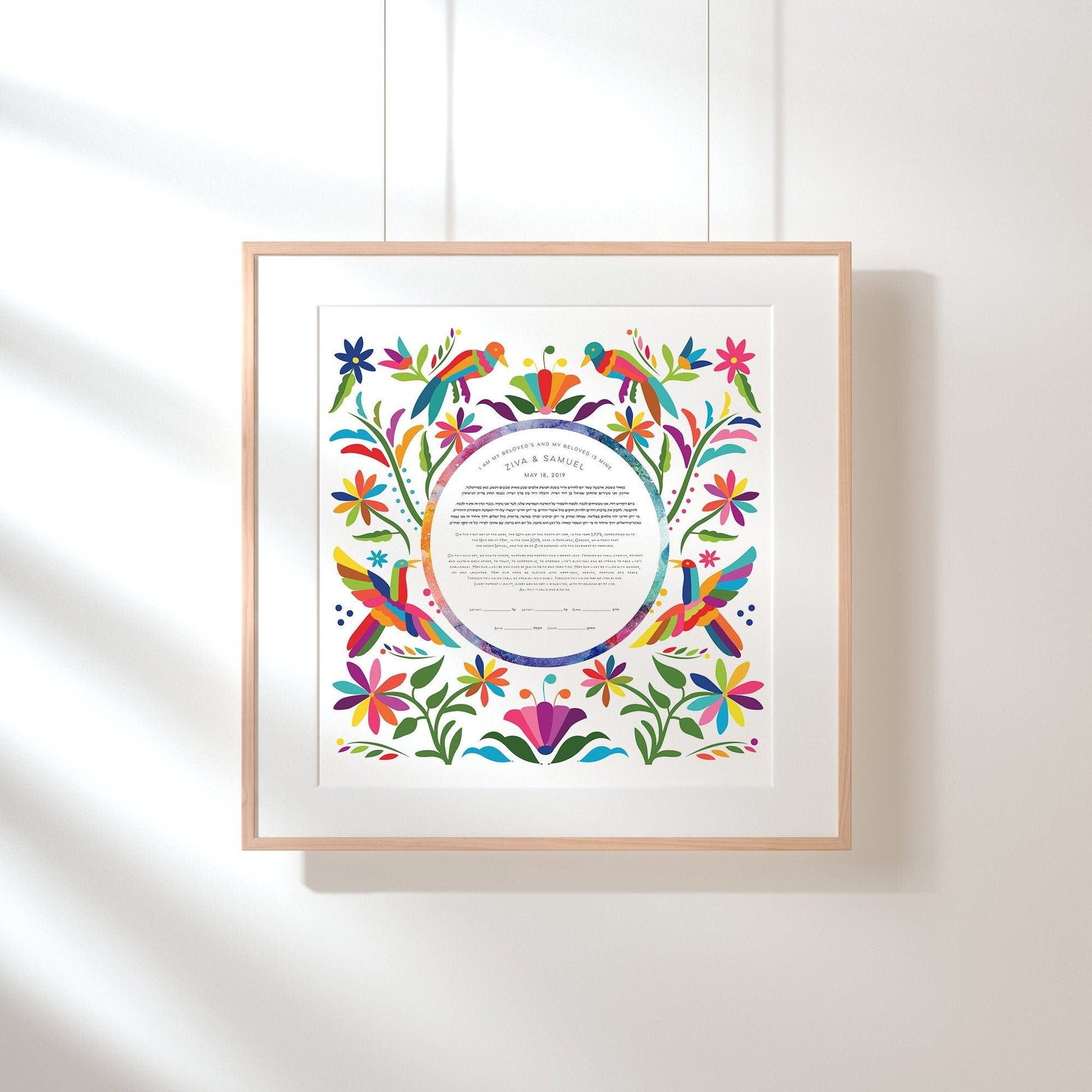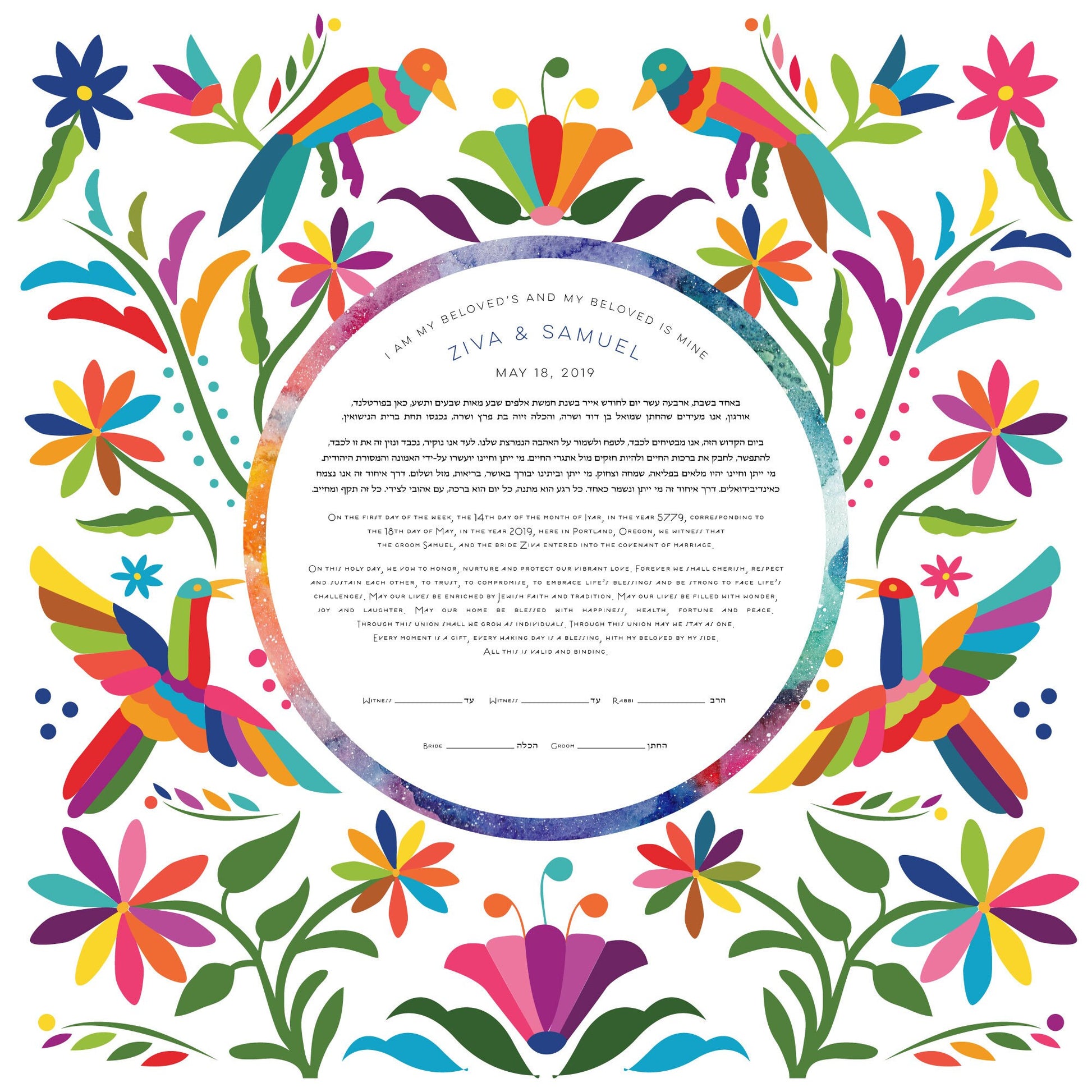 Folk Art Ketubah Print, graphic print, including the text of your choice.