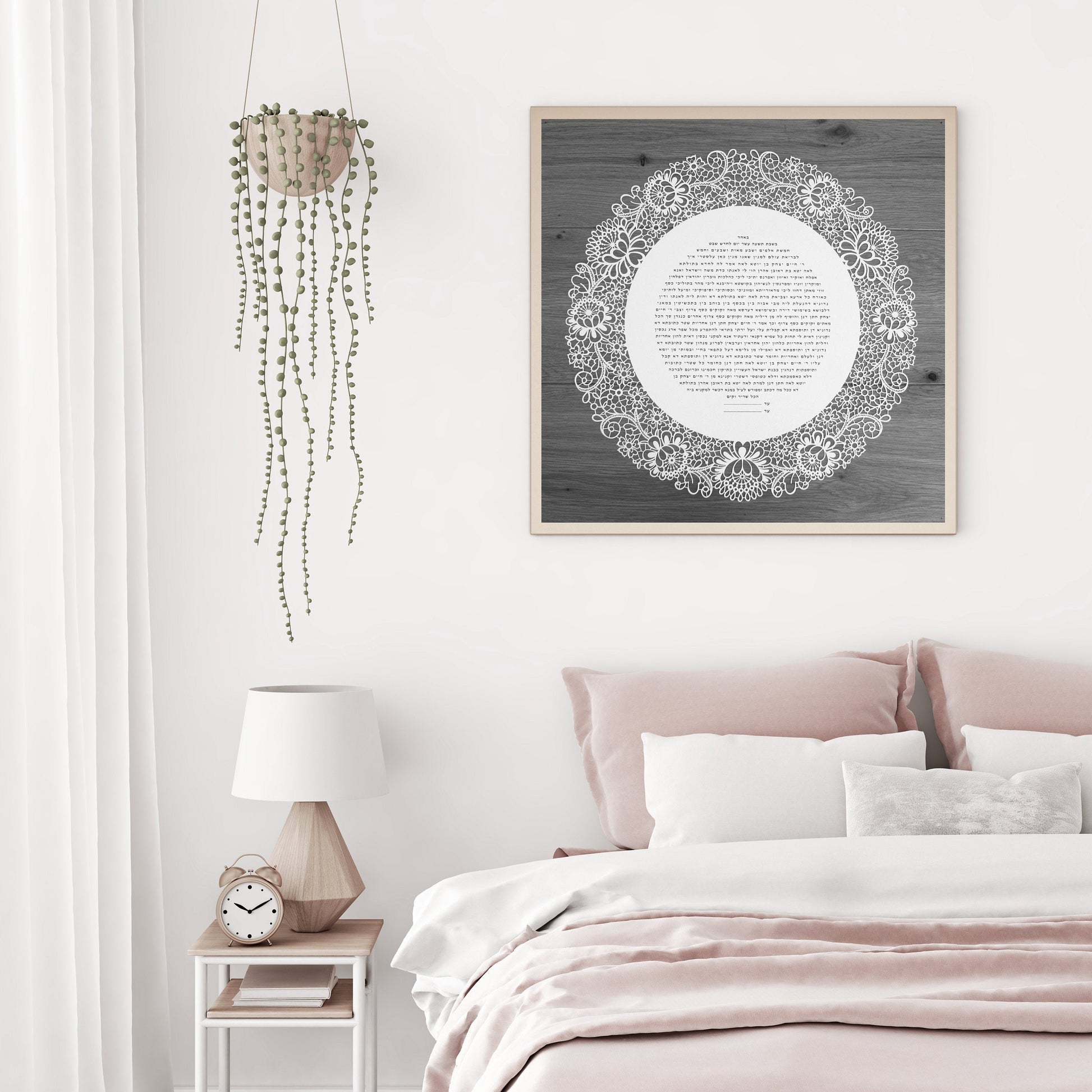 "Lace Ring", laser cut Ketubah, including the text of your choice. Giclée Printed onto fine art paper of the highest quality.