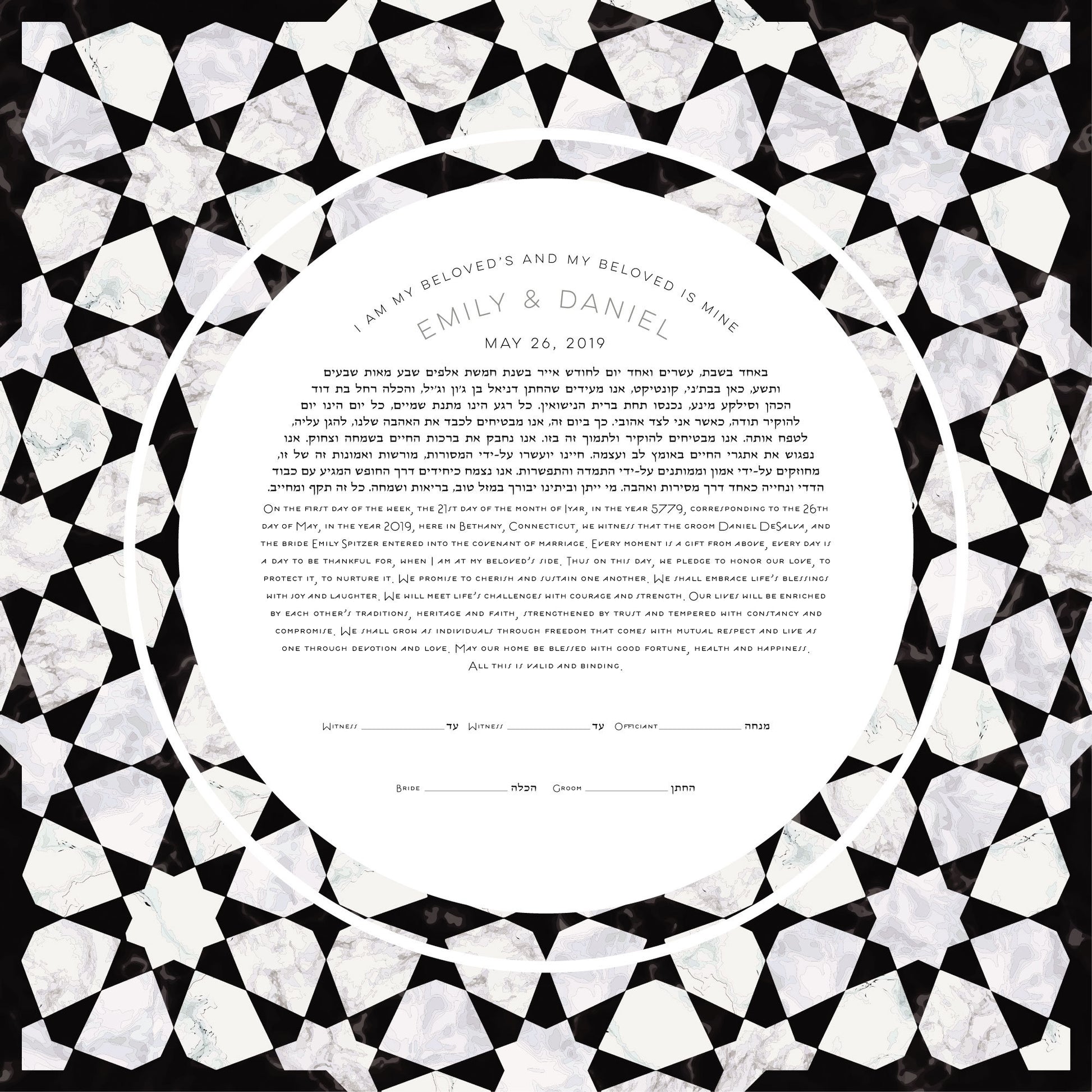 Marble Contrast Mosaic ketubah print, including the text of your choice.