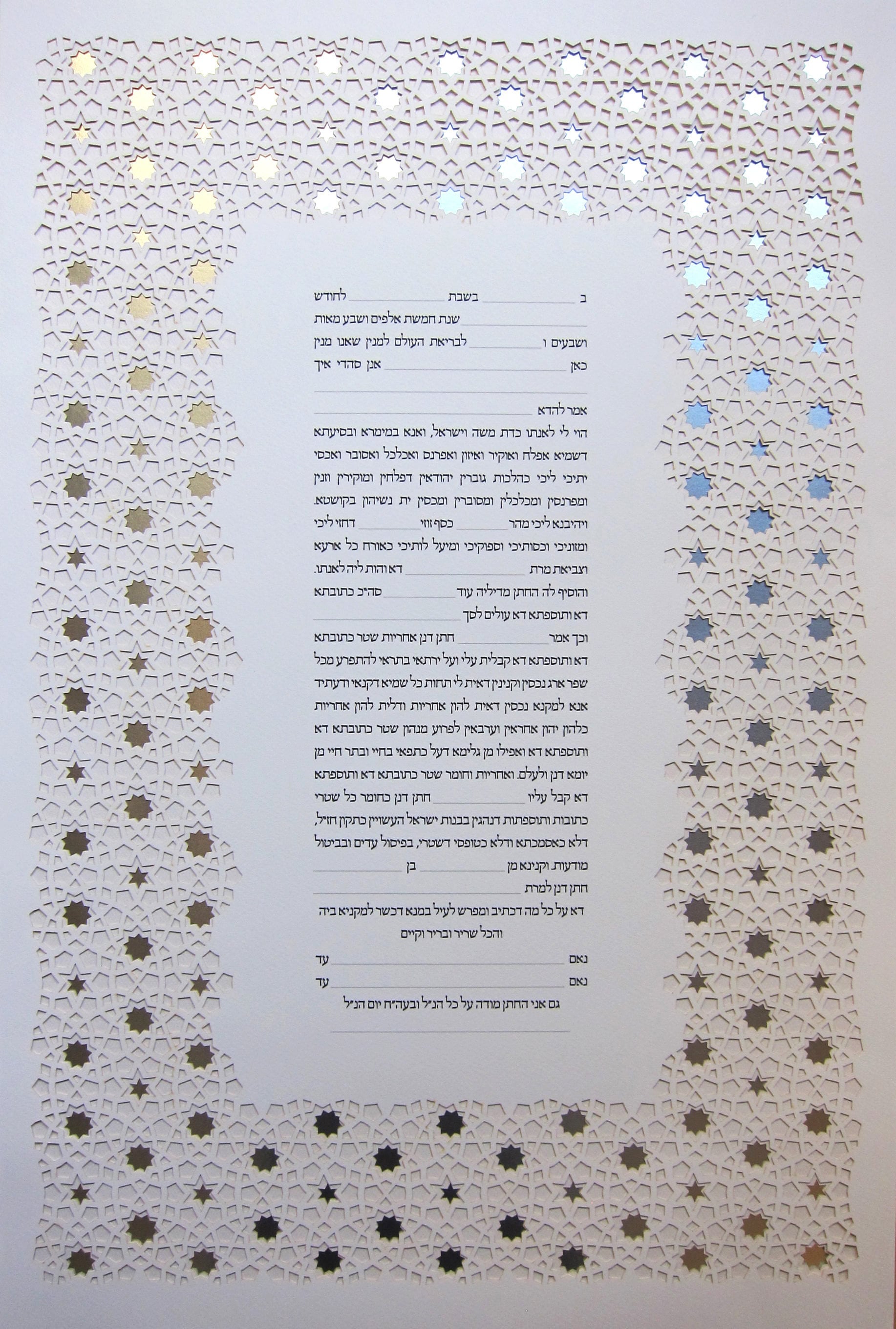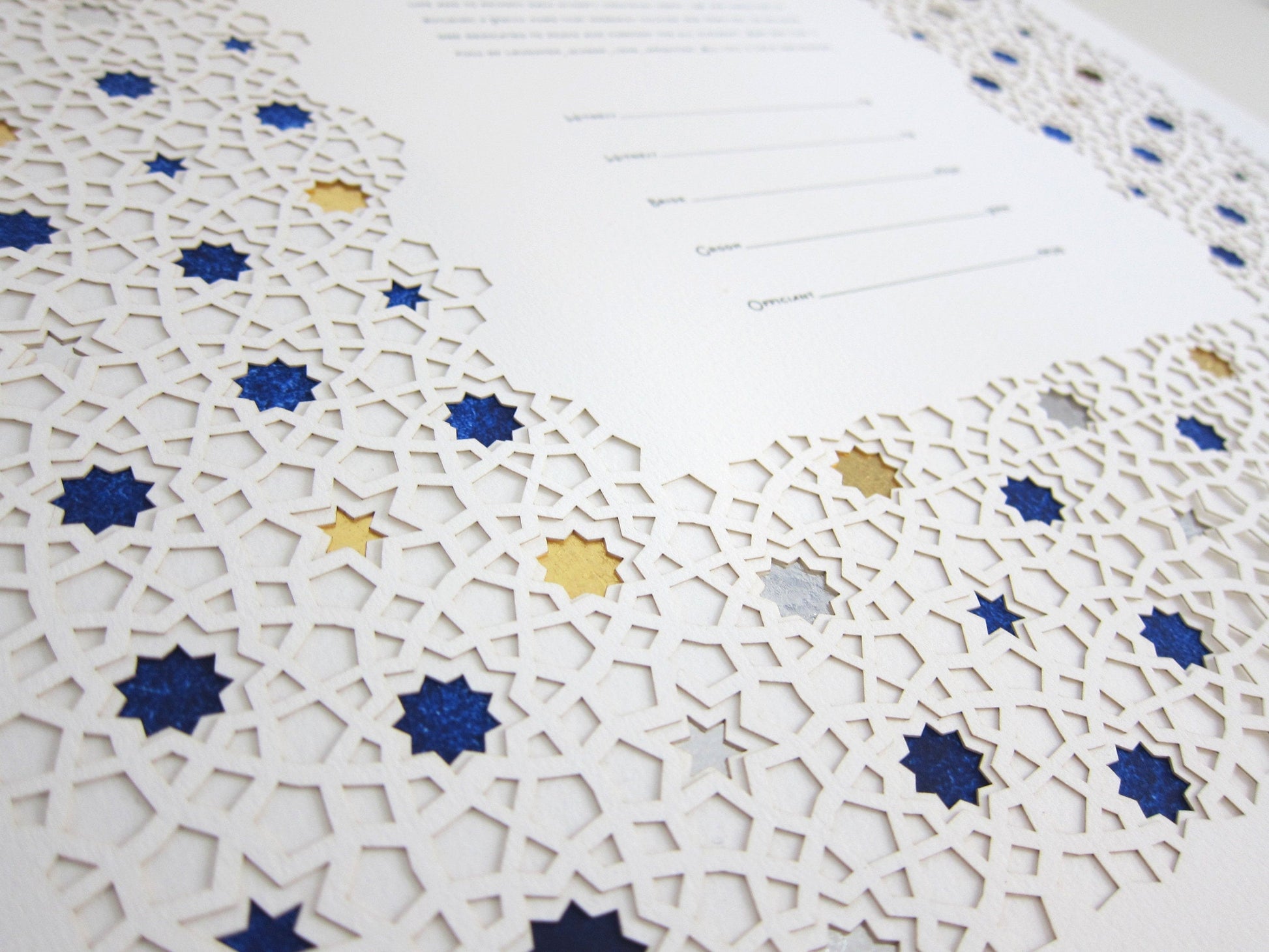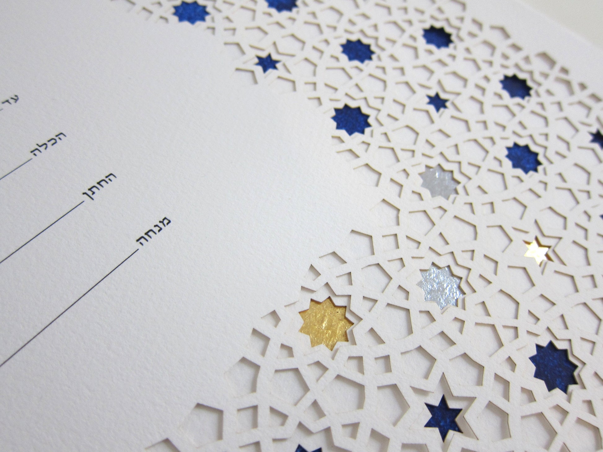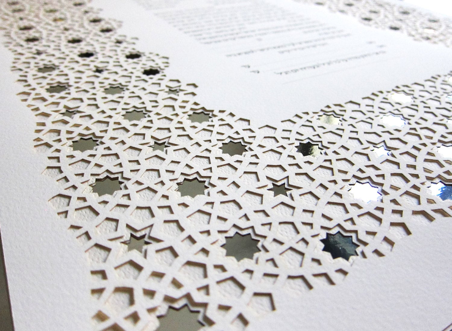 Mizrahi, double layered Laser Cut Geometric Ketubah