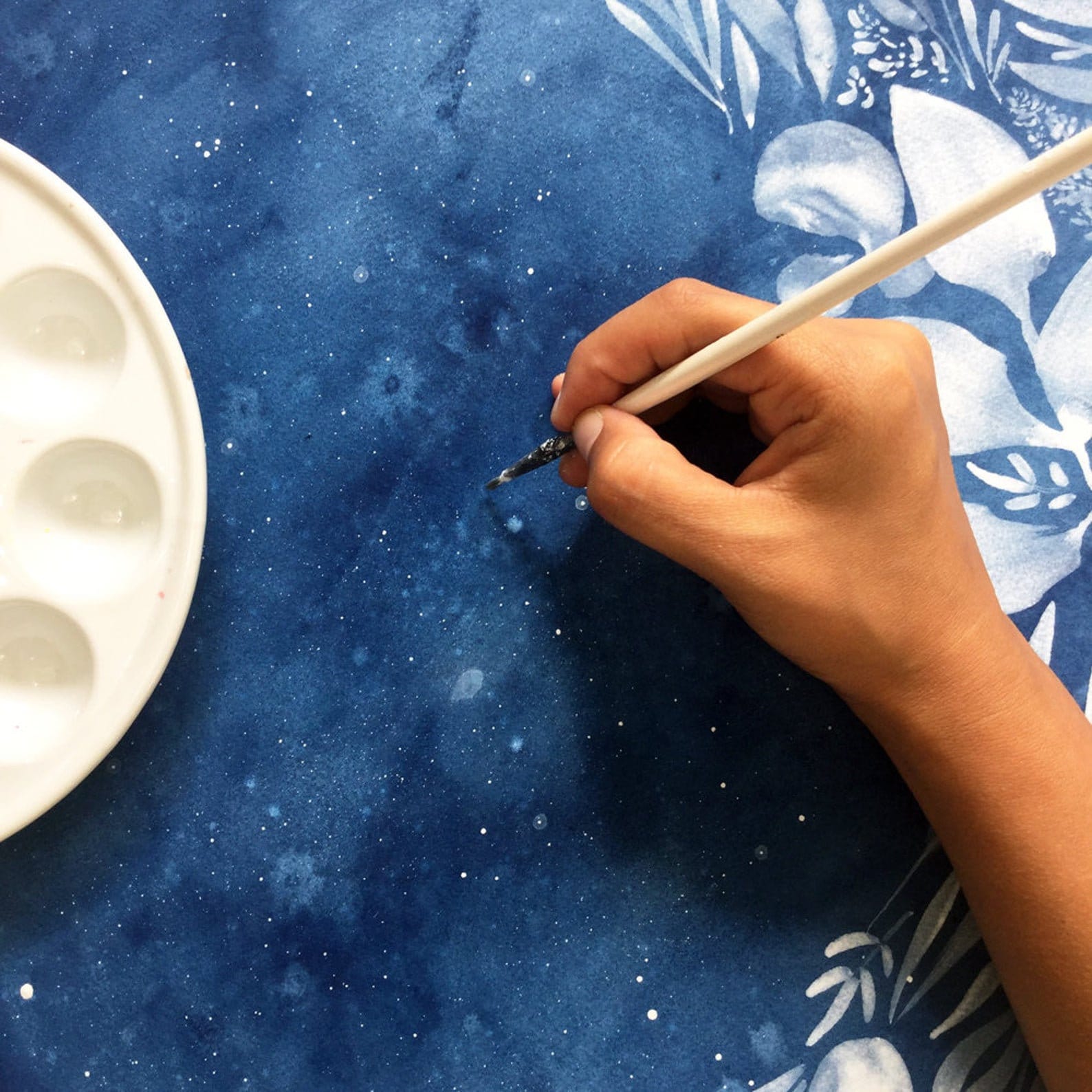 Waxing Flower Moon Watercolor Ketubah print. This print was created with original watercolor 'Waxing Flower Moon' (Ingrid Sanchez, AKA CreativeIngrid - UK, 2018). Giclée Printed onto fine art paper of the highest quality.