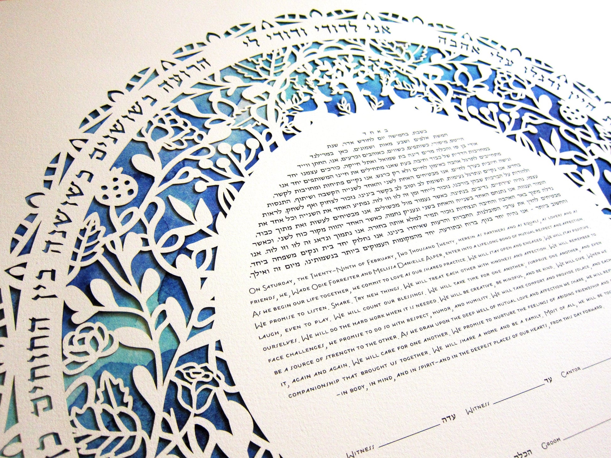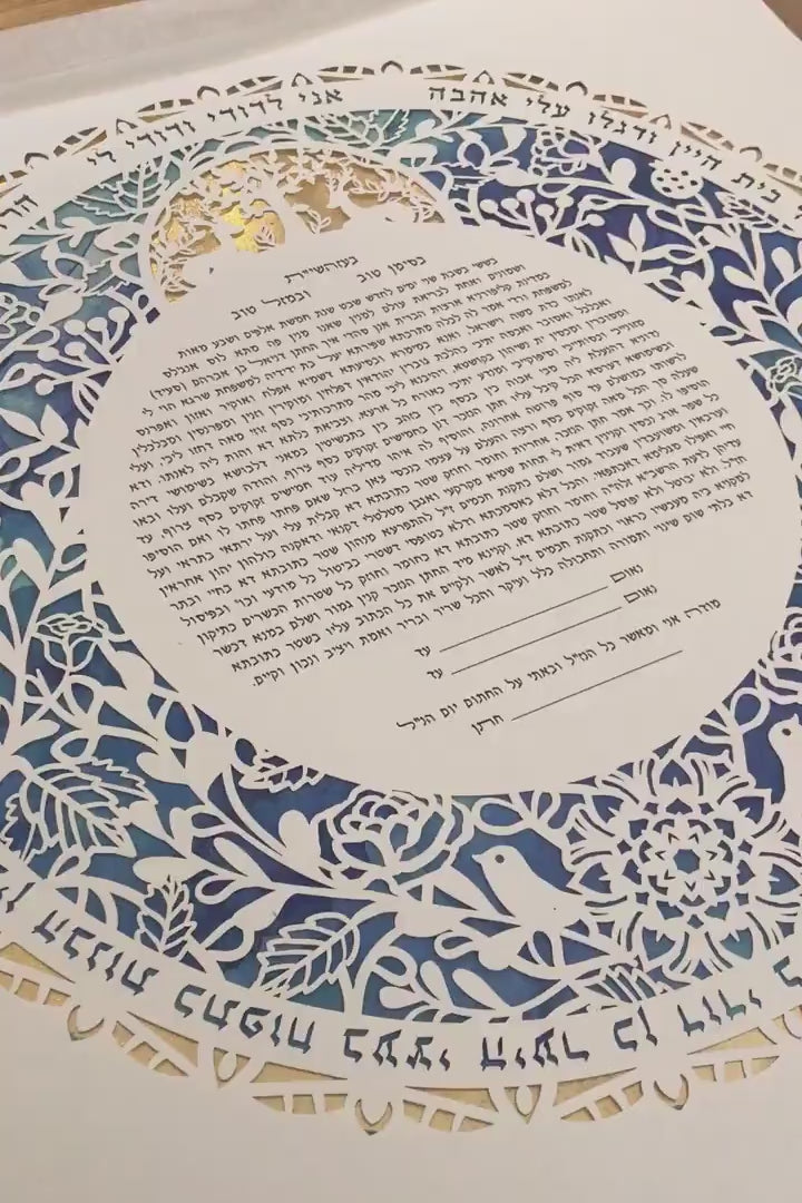 The client is responsible for proof reading the ketubah text before approving it for printing. Ketubata is not responsible for replacing approved texts, should any mistakes be found after the client has made the final approval and it has been printed.